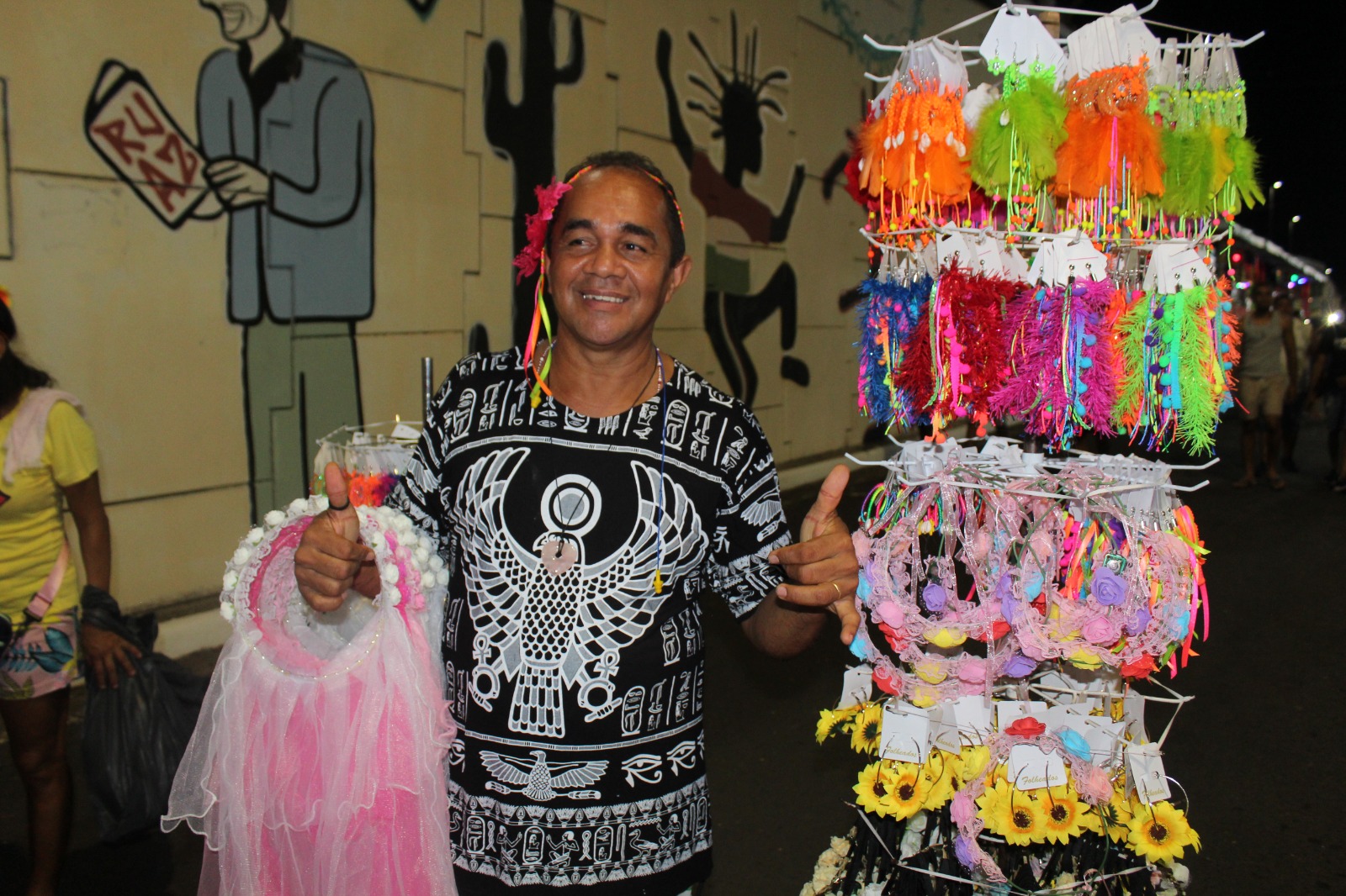 Barraqueiros e vendedores aproveitaram o evento para faturar. De itens de fantasia a copos, também não faltaram vendedores de comida e bebida. “Nossa expectativa é vender bem e deixar o povo chique e elegante. Aposto na cor neon, que é a cor da moda de é super carnaval”, disse Edmilson Atenas, vendedor de adereços como brincos e enfeites de cabeça.