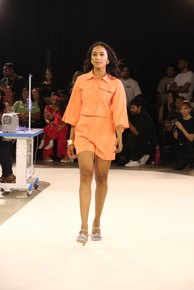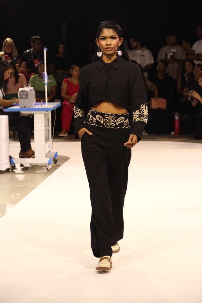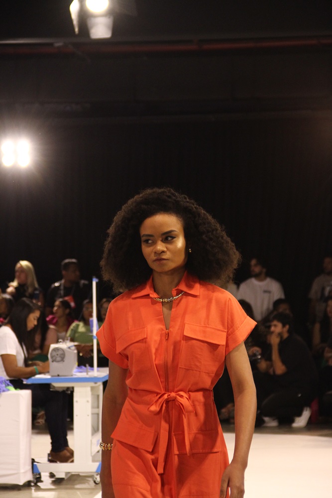 “Foi um prazer participar, foi leve, foi gostoso. Tudo que a gente conseguiu trazer das indústrias pra cá, todo o processo que foi feito. Destruturação, layout, coleção, equipe. Foi uma coisa bem gostosa reunir todo mundo realmente. Que faz tudo acontecer em um ambiente só. Toda essa projeção no desfile foi toda uma ideia nossa”, destaca.