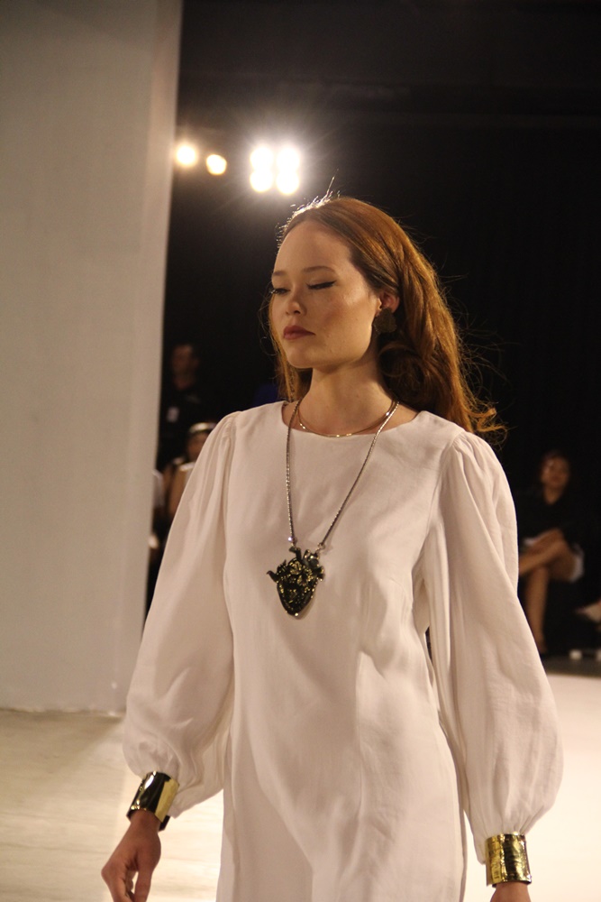 Os acessórios foram destaques nas composições do desfile da Dekott, com semijoias modernas, elegantes, assimétricas e audaciosas.