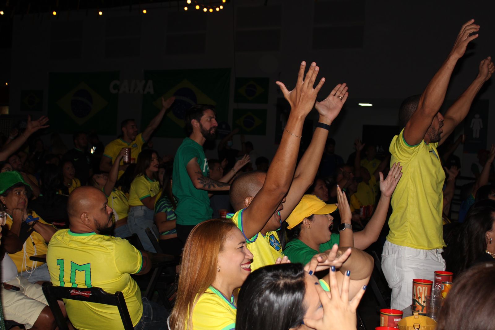 No Centro de Convenções de Teresina (CCT), muitas pessoas se reuniram para assistir o confronto na ‘Torcida do Hexa’ e celebrar a Copa do Mundo com Parangolé, Thiaguin, Planeta Samba e Manu Amorim.