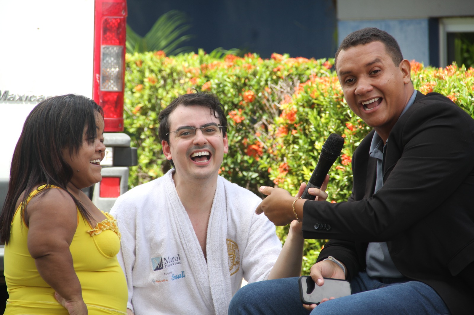 “O sábado, como as pessoas geralmente aproveitam para curtir, pra se divertir, a gente vai trazer essa proposta para também quem tá ligando a televisão, ter notícia, mas ter diversão ao mesmo tempo também, que fica muito mais gostoso de acompanhar as notícias, principalmente no sábado, que é um dia de lazer das pessoas, das famílias e tal”, completou o apresentador.