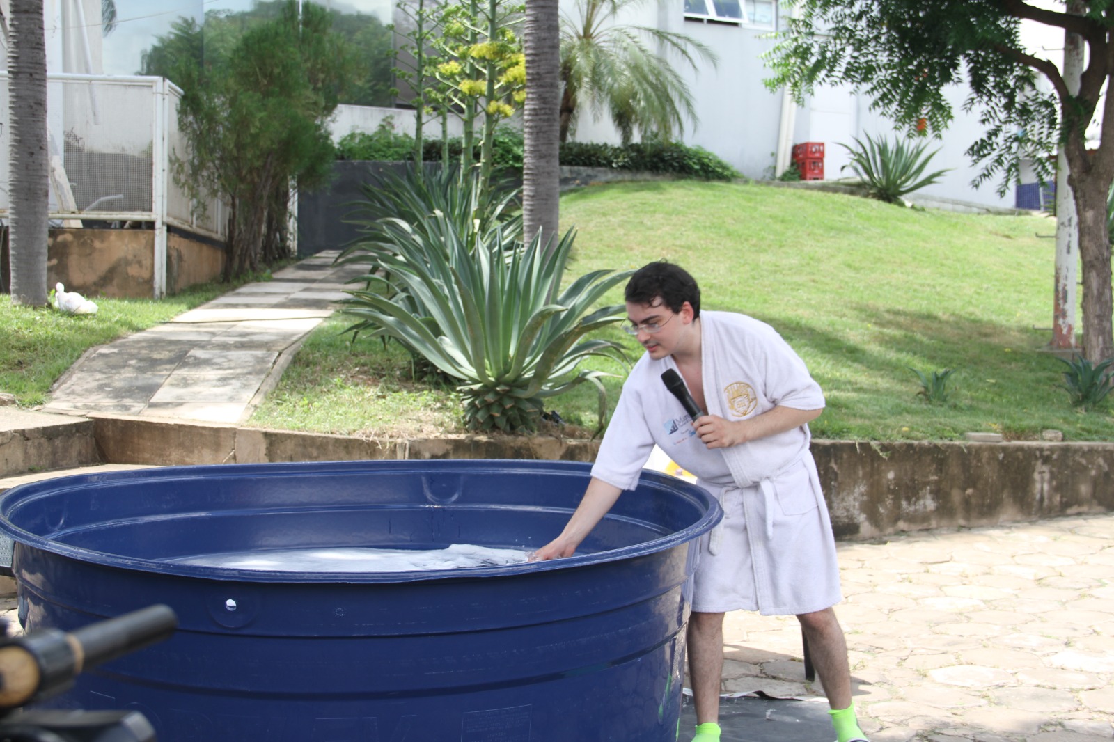 O apresentador Dudu Camargo, da TV Meio, estreou seu novo quadro neste sábado (27) durante o programa Ronda. Segundo ele, a 'Caixa d' Água do Dudu' é uma referência e homenagem à clássica “Banheira do Gugu”, que era conduzida pelo apresentador Gugu Liberato, que faleceu em novembro de 2019, nos anos 90.