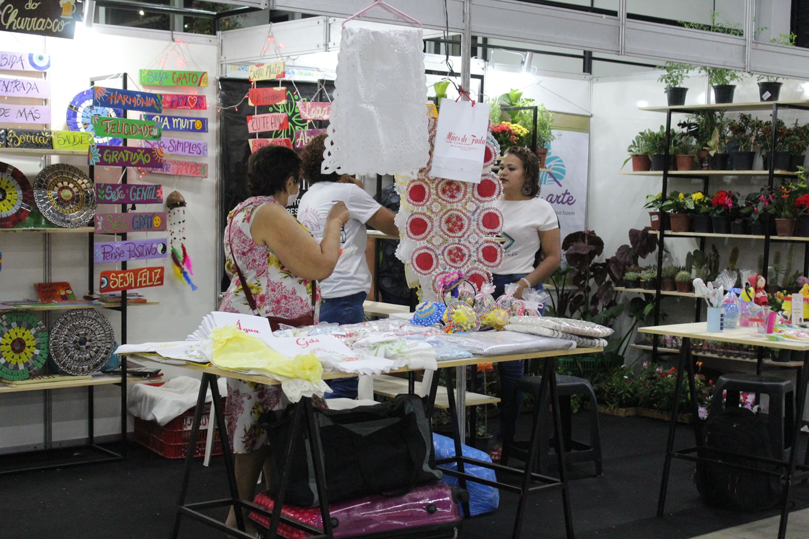 Outra empreendedora do ramo de artesanato, Nyza Santos, que trabalha com a venda de mudas, levou uma novidade para a Feirarte, o macramê. "Macramê é um artesanato. Ele é produzido manualmente, não utiliza sequer agulha, você vai moldando e dando forma a peça. Elas são únicas, cada peça tem o seu perfil individual", explicou a artesã. Nyza ainda falou sobre a relevância da Feira. "Primeiro, ela nos permite vender, e em segundo também divulgar e criar um público muito fiel, que traz ideias pra gente".