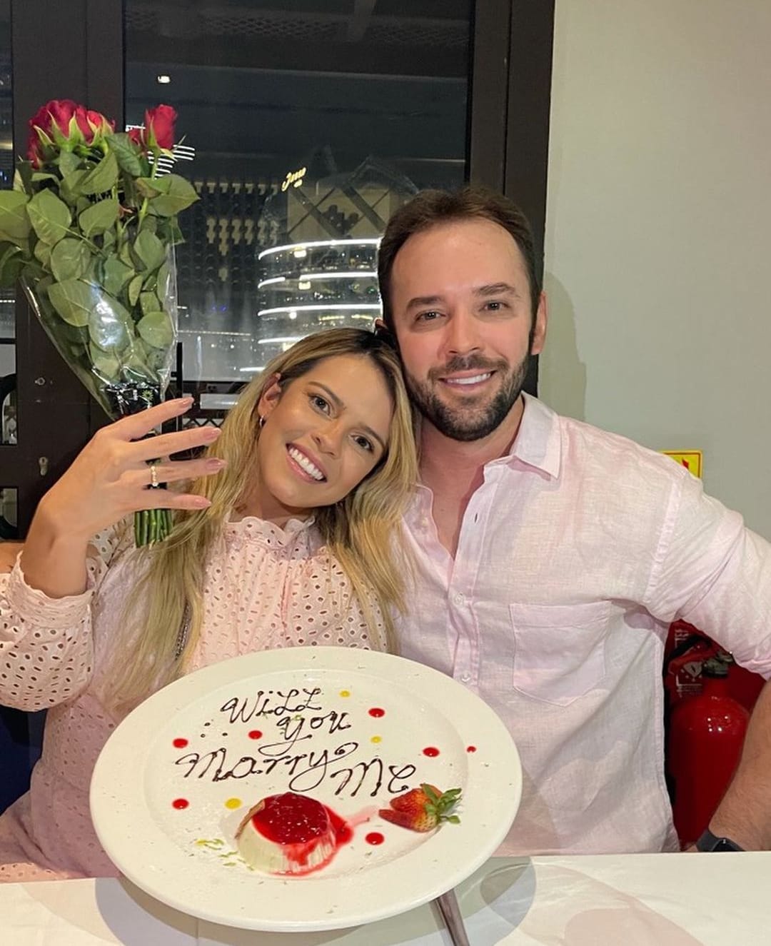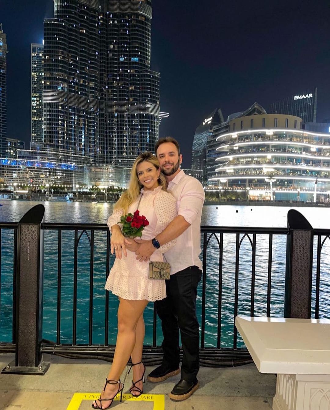 A empresária Mariela Guida, amiga e sócia da influencer Gabi Pinho, está em viagem para Dubai com o namorado, o médico Fábio Martins, e grupo de amigos. Nesta quarta-feira (14), ela foi surpreendida com o pedido em casamento pelo médico. "TE AMO! Meu príncipe", escreveu ela na postagem sobre o momento.