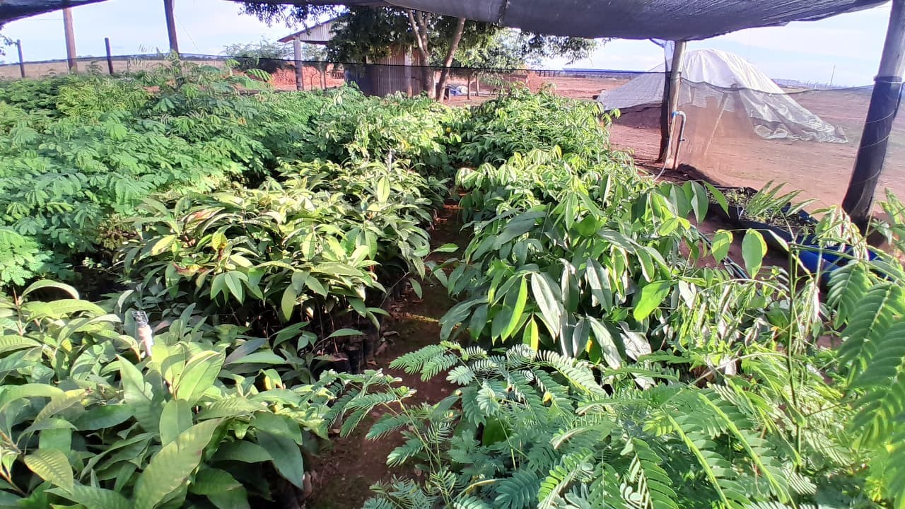 Produção de mudas nativas para recuperação de nascentes (Foto: Francy Teixeira/MeioNews)Mas a visão de sustentabilidade do grupo extrapola a porteira. Há 12 anos, o JCN mantém um viveiro próprio que produz 35 mil mudas de espécies nativas por ano, como jatobá, pequi e aroeira. O objetivo é claro: recuperar e proteger as 46 nascentes identificadas dentro da propriedade.