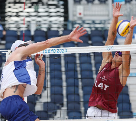 Os brasileiros perderam para os letões Martin Plavins e Edgar Tocs por 2 a 0, parciais de 21/16 e 21/19 nas quartas de final