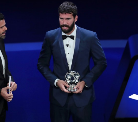Destaque do Liverpool na conquista da última Liga dos Campeões, Alisson conquistou mais um troféu nesta quinta-feira. O brasileiro foi eleito pela Uefa o melhor goleiro da Europa na temporada 2018/19, desbancando o francês Llorris, do Tottenham, e o alemão Ter Stegen, do Barcelona, e recebeu a premiação antes do sorteio dos grupos da próxima Champions. Informações do site GloboEsportes.com