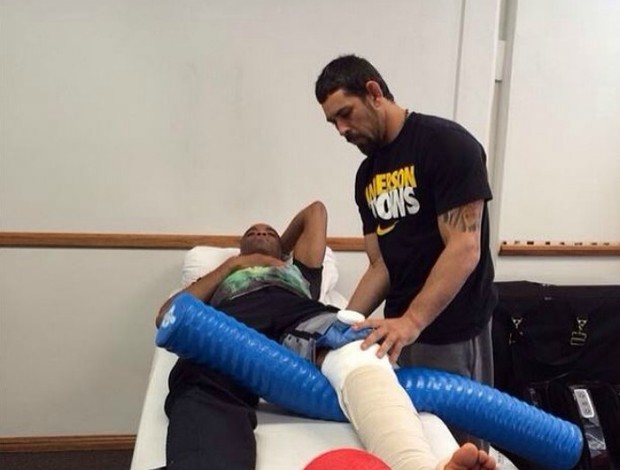 Após a grave lesão sofrida no duelo diante de Chris Weidman, no UFC 168, dia 28 de dezembro, em Las Vegas (EUA), Anderson Silva já inicou seu processo de recuperação. Nas redes sociais, o ex-campeão dos pesos-médios do Ultimate publicou uma foto durante seu tratamento ao lado do fisioterapeuta Guto Demeski na perna fraturada após a tentativa de um chute baixo que foi bloqueado com o joelho pelo americano. Ele agradeceu o carinho demonstrado pelos fãs desde o início e prometeu que ficará recuperado. Entretanto, o Spider ainda deixou em aberto a possibilidade de um retorno ao octógono.