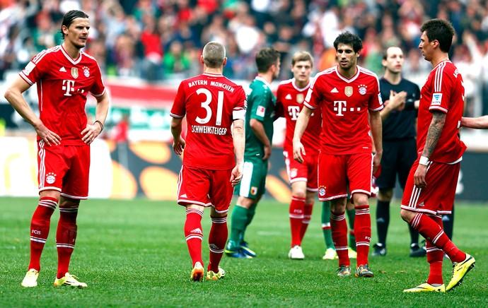 Campeão alemão com sete rodadas de antecedência, o Bayern de Munique pisou no freio e foi derrotado neste sábado pelo Augsburg, por 1 a 0, na SGL Arena. Embora o resultado não mude nada na atual edição da Bundesliga, a derrota pôs fim à invencibilidade de 53 jogos no Campeonato Alemão e tirou do clube bávaro a chance de se tornar o primeiro campeão invicto da Alemanha. Sascha Moelders marcou o gol do Augsburg.