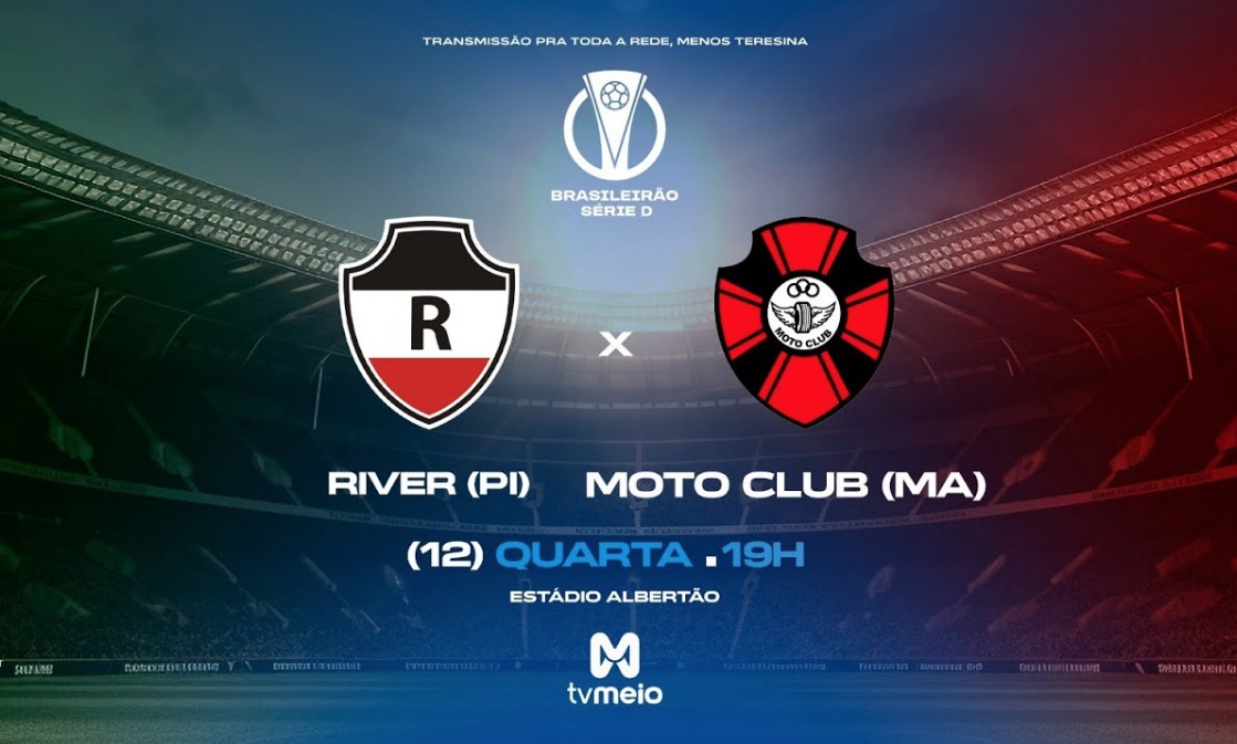 A TV Meio transmiste ao vivo o jogo entre River-PI e Moto Club pela Série D do Campeonato Brasileiro direto do Estádio Albertão em Teresina, pela oitava rodada da competição. A partida conta com narração de Carlinhos Bacana, comentários de Francinito Loureiro e como réporter Daiton Meireles. Vale lembrar que River e Moto Club se enfrentaram no Estádio Castelão, em São Luís, e o resultado foi 1 a 1.