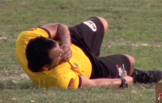É que ainda no primeiro tempo da partida, um enxame de abelhas invadiu o campo e atacou os presentes no gramado. A reação do árbitro e dos atletas foi imediata: todos deitaram no gramado e o jogo ficou paralisado por cerca de cinco minutos.