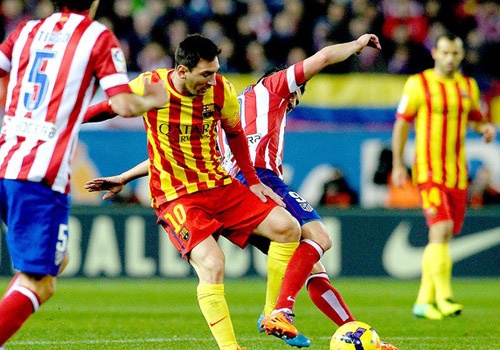 Aos 33, Valdés salvou o Barça com bela defesa após voleio de Koke. Dois minutos depois, Messi apareceu bem e quase abriu o placar no Vicente Calderón. Após falha da defesa do Atlético, o craque entrou sozinho na área e bateu de canhota, forte, mas o goleiro Courtois defendeu. Com três minutos de acréscimos até o final, Messi e Neymar ficaram apenas 27 minutos em campo juntos.
