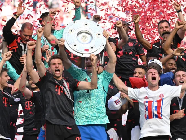 Neste sábado (27), o Bayern de Munique conquistou o título do Campeonato Alemão da temporada 2022-23. A vitória por 2 a 1 sobre o Colônia aliada ao tropeço do Borussia Dortmund, que empatou em casa por 2 a 2 com o Mainz 05, garantiram o título ao Bayern. Ambos os times alcançaram 71 pontos na tabela, porém, o Bayern leva vantagem sobre o rival devido ao saldo de gols: 54 contra 39.