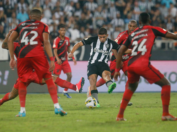 A primeira chance foi do Athletico-PR. Aos sete minutos, após falta cobrada para a área, Hugo Moura ganhou pelo alto e obrigou Gatito Fernández a mandar para escanteio. A resposta do Botafogo foi três minutos depois. Lucas Fernandes recebeu na entrada da área e chutou. A bola tocou na trave antes de sair.