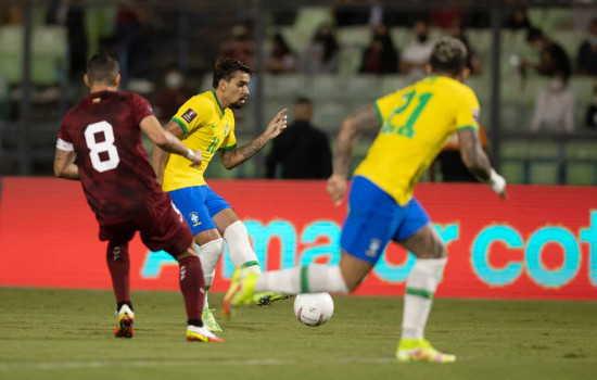 O jogo - Na primeira chance da partida, a Seleção tabelou por dentro, e Paquetá encontrou Gabigol, que dominou e finalizou de fora da área, à esquerda do gol. No entanto, foi a Venezuela que abriu o placar. Aos dez minutos, Soteldo recebeu pela direita e cruzou para a área. Marquinhos e Fabinho escorregaram, deixando Eric Ramírez livre para cabecear no canto direito.