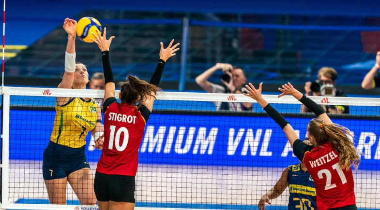 A Seleção Brasileira feminina de vôlei garantiu vaga na semifinal da Liga das Nações (VNL) ao vencer a Alemanha por 3 sets a 0, nesta quinta-feira (24), em Lodz, na Polônia. As parciais foram 25/19, 26/24 e 25/14.