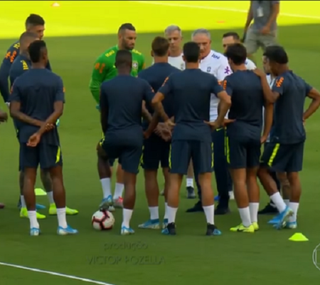 O técnico da Seleção não passou a escalação na entrevista coletiva da segunda-feira passada e nem nos poucos treinos que teve. Mas deu pistas, avisou que teria por volta de quatro mudanças e iniciou a última atividade com Fagner no lugar de Daniel Alves na lateral, Eder Militão no de Thiago Silva na zaga, Allan na vaga de Arthur no meio e David Neres substituindo Richarlison no ataque. A ideia é não mexer na estrutura da equipe e aproveitar o jogo para testes contra o vice-campeão da Copa América.