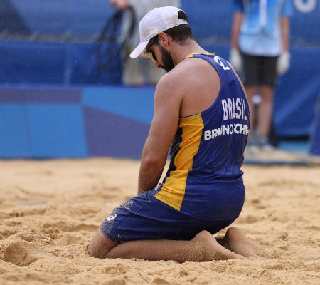 Mesmo sob nuvens, a impressão era de um sol para cada um no Parque Shiokaze durante a maior parte do jogo. Sob uma sensação térmica de 40°, a chuva até caiu no fim, mas não a tempo de aliviar para Bruno Schmidt e Evandro. Os dois tentaram, mas caíram para Plavins e Tocs, da Letônia, nas oitavas de final do vôlei de praia. Em 2 sets a 0, parciais 21/19 e 21/18, a dupla brasileira se despede das Olimpíadas de Tóquio.