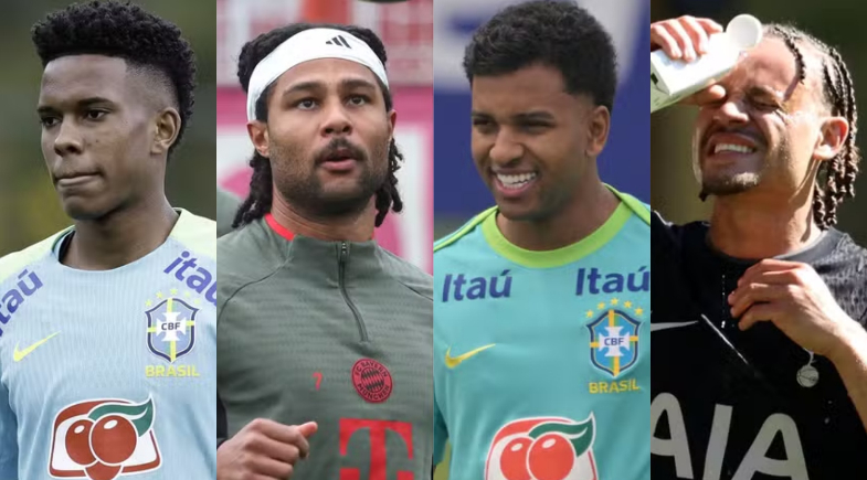 Estêvão, Gnbary, Rodrygo e Xavi Simons: dúvidas ou ausências na Copa | Foto: Reprodução/ Ribeiro/CBF; Karl-Josef HILDENBRAND / AFP; Nelson ALMEIDA / AFP; Darren Staples / AFP