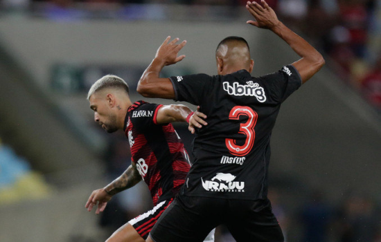 Mas a primeira emoção ficou por conta da defesa do Mengão. Aos 31’, o zagueiro Fabrício Bruno recuou para David Luiz, que deixou passar e Hugo teve que dar um carrinho para evitar o gol contra.