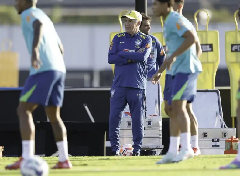 Carlo Ancelotti comanda o primeiro treino da seleção brasileira
