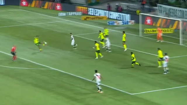 - A bola afastada por Richard Ríos permaneceu ao redor da área do Palmeiras;