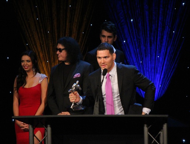 Weidman discursa após receber o prêmio de Lutador do Ano no World MMA Awards | Foto: Combate.com