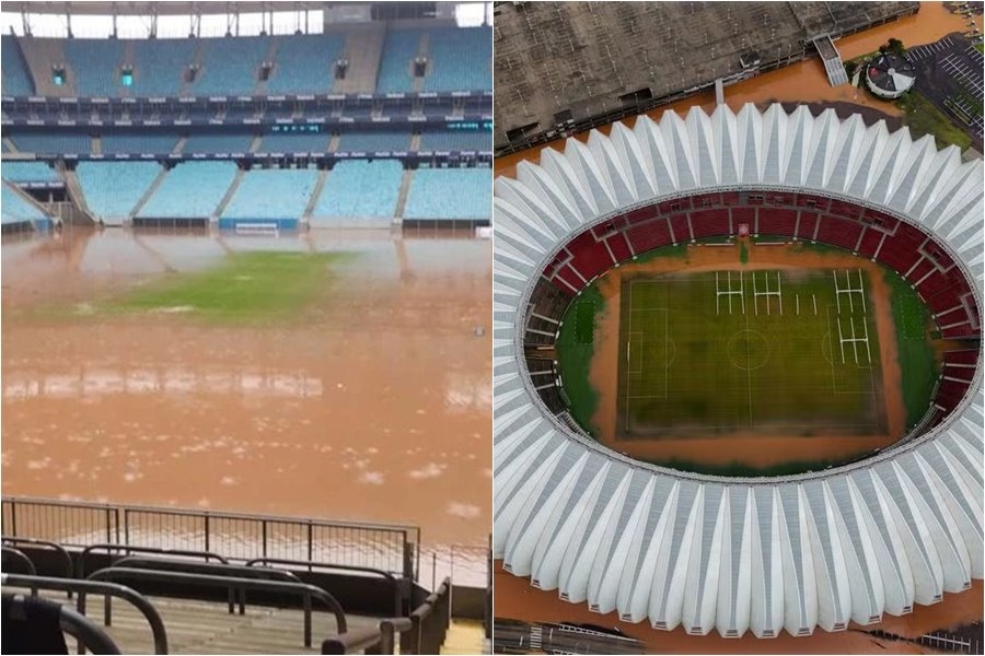 ESTÁDIO BEIRA-RIO: As áreas ao redor do Beira-Rio sofrem com as consequências do aumento do nível do Guaíba. Ruas e avenidas que conduzem ao estádio estão submersas, assim como uma grande parte do Centro Histórico da cidade. De acordo com projeções de pesquisadores da Universidade Federal do Rio Grande do Sul (UFRGS), este cenário não deve mudar significativamente nos próximos dias.