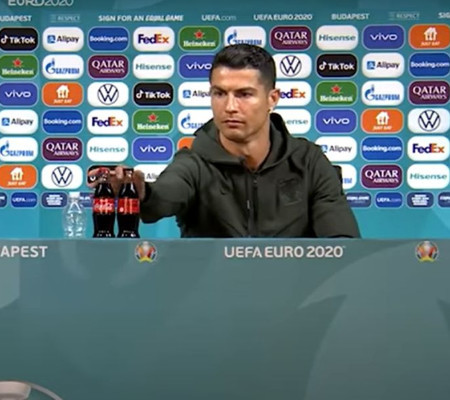 A Coca-Cola não teve o melhor início de semana. Depois de ver Cristiano Ronaldo tirar da frente duas garrafinhas do refrigerante na entrevista coletiva de Portugal ontem (14) na Eurocopa, a empresa apresentou uma perda de US$ 4 bilhões em valor de mercado logo após a atitude do português.