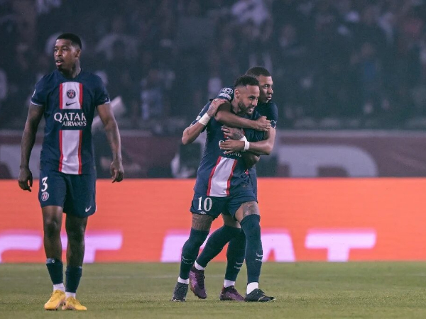 Logo no início do jogo a dupla Neymar e Mbappé mostrou que não ia facilitar para os adversários. Aos cinco minutos, o francês tocou para o camisa 10 e recebeu de volta, de cavadinha. Sem deixar a bola cair, o camisa 7 mandou para o fundo do gol.