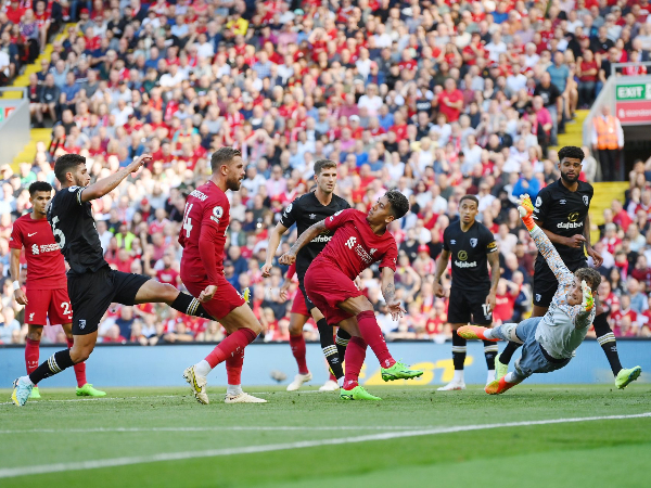 O Liverpool mostrou a que veio logo no primeiro tempo. Foram cinco gols em 45 minutos. Bobby Firmino contribuiu pra Luis Díaz, Harvey Eliott e Alexander-Arnold marcarem três gols antes dos primeiros 30 minutos. Nos 31 minutos ele fez mais um, até que Dijk completou as cinco vezes que a rede do Bournemouth balançou.