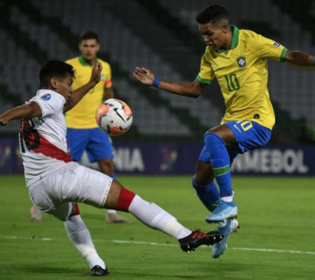 Conforme era esperado, a Seleção Brasileira, logo nos primeiros minutos de jogo, mantinha mais a bola sob seu domínio. No entanto, com os jogadores peruanos bem recuados, poucas eram as jogadas pelas laterais e pelo meio, com apenas uma finalização de Antony contra o gol de Solís.