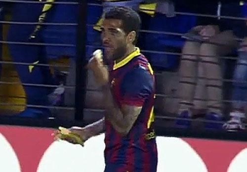 Na partida entre Barcelona e Villarreal, pelo Campeonato Espanhol, o lateral-direito do Barcelona foi ofendido ao se preparar para cobrar um escanteio. Ao perceber a banana atirada em sua direção, Daniel Alves pegou-a do chão, descascou-a e comeu a fruta. O ato foi elogiado pela imprensa europeia, por dirigentes de clubes, ex-jogadores e até chefes de Estado. A presidente Dilma Rousseff saiu em apoio a Dani Alves e o primeiro-ministro italiano Matteo Renzi fez questão de comer uma banana em público.