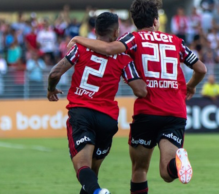O São Paulo dominou a etapa inicial contra o Ceará. Tanto que abriu vantagem de dois gols em 13 minutos. Toró, depois de grande jogada de Gabriel Sara com Helinho, abriu o placar aos 10 minutos. Três minutos depois, Igor Vinicius aproveitou rebote do goleiro e ampliou. Seguro na defesa, o Tricolor praticamente não teve trabalho com o CSA até os 43 minutos, quando Jarro Pedroso aproveitou rebote de cabeçada na trave de Ricardo Bueno e diminuiu para o time alagoano.