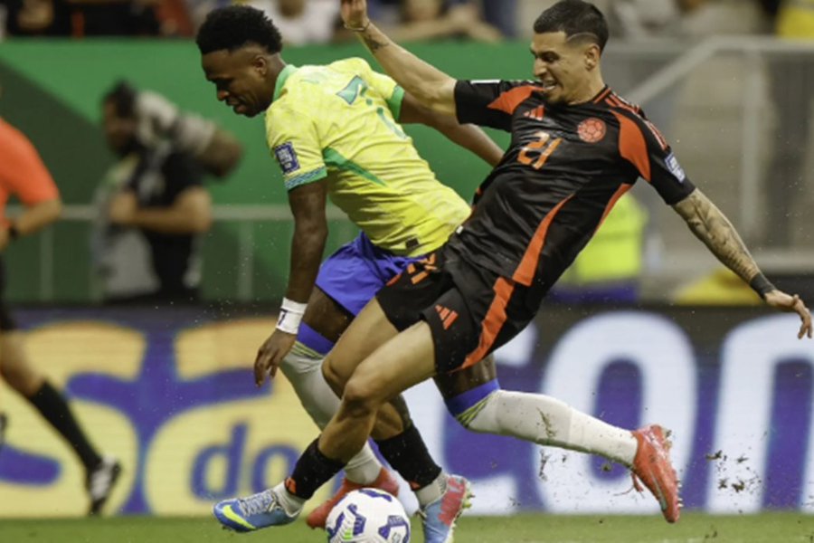 Com um gol de Vini Jr. no último minuto, a Seleção Brasileira venceu a Colômbia por 2 a 1 no Mané Garrincha, na noite desta quinta-feira (20). Com a vitória, o Brasil alcançou 21 pontos e subiu para a segunda posição nas Eliminatórias Sul-Americanas rumo à Copa do Mundo de 2026.