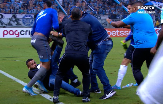 A briga iniciou-se após o atacante do Tricolor comemorar com maior ênfase uma disputa de bola ao lado do banco do Colorado, o que não foi interpretado bem pelos atletas do Inter (veja no vídeo abaixo).