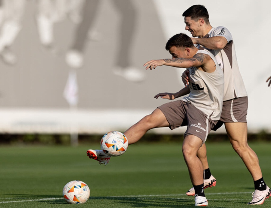 Nesta segunda-feira, o treino começou com uma sessão de força na academia, seguida de aquecimento no gramado. Ramón Díaz comandou um treino tático, no qual o elenco também praticou cobranças de pênaltis e faltas, preparando-se para todos os cenários possíveis no jogo.