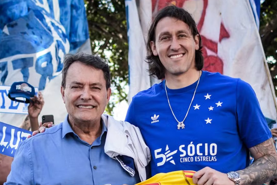 O clube ainda não anunciou o tempo de contrato. O goleiro de 36 anos rescindiu com o Corinthians, que era válido até o fim de 2024, na última semana. Segundo apuração do UOL, o novo acordo tem duração de três temporadas. Pedro Lourenço, dono da SAF do Cruzeiro, entregou uma camisa de goleiro do clube ao reforço. O item ainda não conta com a numeração que será utilizada por Cássio em seu novo clube.