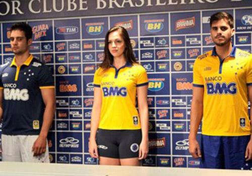 O Cruzeiro lançou na manhã desta sexta-feira, na Toca da Raposa II, o terceiro uniforme de jogo do clube, inspirado nas cores da seleção brasileira. A linha comemorativa entra no clima da Copa do Mundo e segue a tendência de clubes como Corinthians, Bahia, Internacional, Santos e Cortiba. O uniforme amarelo apresenta as tradicionais estrelas soltas e uma gola polo, com detalhes em azul. A Raposa estreia a roupa nova já neste sábado, contra o Coritba, no Mineirão, às 18h30 (de Brasília), em jogo válido pela quinta rodada do Campeonato Brasileiro.