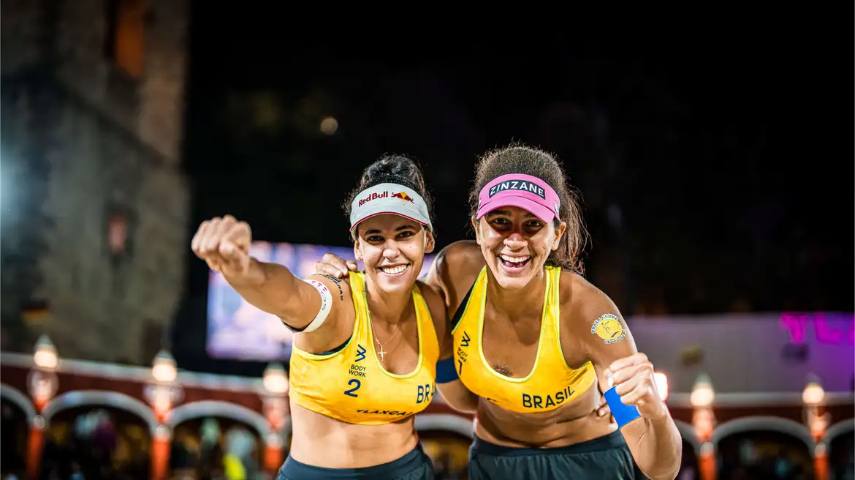 Como foi a conquista: A dupla, que está na liderança do ranking mundial da modalidade, confirmou a vaga ao alcançar, nesta quinta-feira (7), as quartas de final da etapa de Doha (Catar) do Circuito Mundial. Para avançar na competição que ocorre no Catar, as brasileiras superaram as suíças Anouk Vergé-Depré e Joana Mäder por 2 sets a 1 (parciais de 15/21, 21/15 e 15/8).