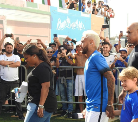 Sem jogar desde a lesão no tornozelo sofrida em amistoso contra o Catar, em 5 de junho, Neymar bateu bola (inclusive com o filho Davi Lucca) e fez gol (veja no vídeo abaixo), na Praia Grande, litoral de SP, no “Neymar Jr’s Five”, torneio de 5x5 realizado em seu instituto e organizado por um de seus patrocinadores com competidores de 42 países.