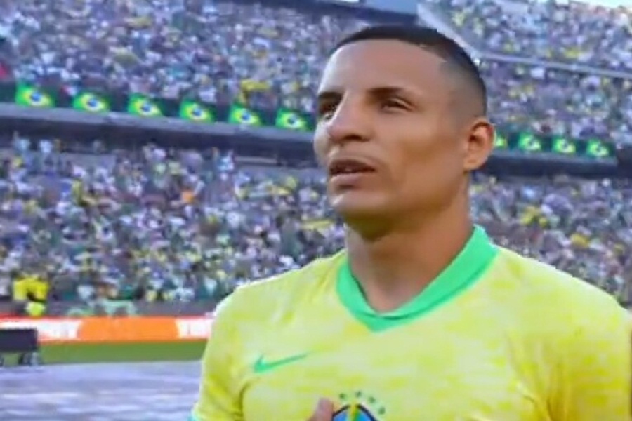 Veja o momento em que o jogador foi flagrado pulando parte do hino nacional brasileiro: