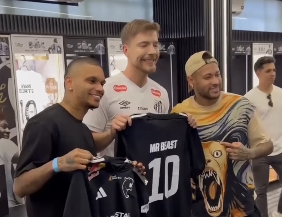 Durante a visita, Neymar presenteou MrBeast com camisas da FURIA. O criador de conteúdo já usava o uniforme do Santos, clube onde o craque iniciou a carreira. O encontro aconteceu após o treino da manhã no CT Rei Pelé. Em seguida, MrBeast conheceu o vestiário e o gramado da Vila, onde posou para fotos com Neymar e seus amigos.