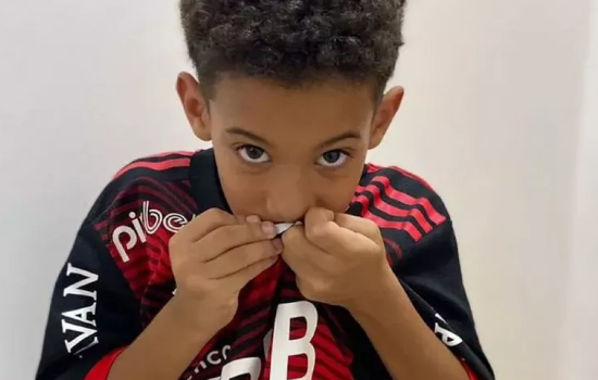 Felicidade! Filho de jogador do Altos recebe camisa do Flamengo de Gabigol