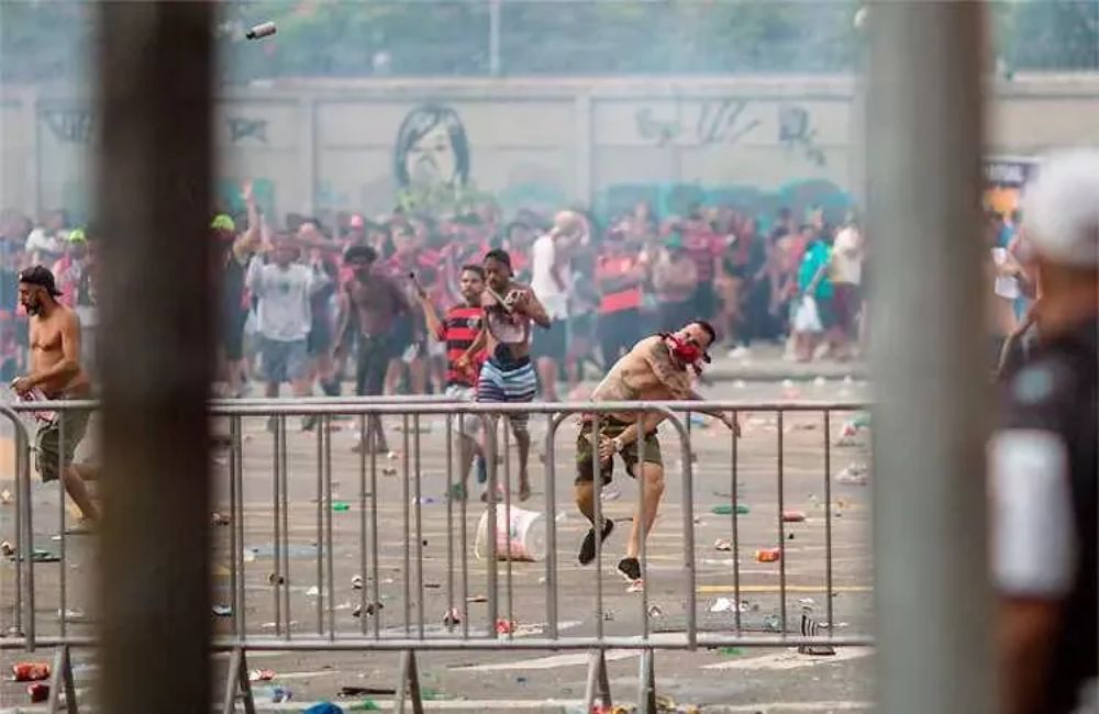 O que começou como uma grande celebração pelo quarto título do Flamengo na Libertadores acabou em tumulto na tarde deste domingo (30), no Centro do Rio. A chegada dos jogadores ao local da festa, no Circuito Preta Gil, atraiu uma multidão e, diante da confusão formada, policiais militares utilizaram gás lacrimogêneo e balas de borracha para dispersar os torcedores.