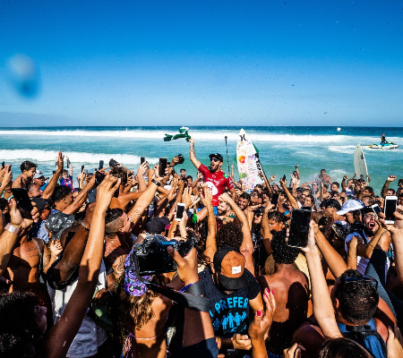 "Todo mundo, independentemente da profissão, olha de fora e vê a gente viajando para os melhores lugares do mundo e pegando as melhores ondas. Mas nem sempre é isso que preenche o nosso coração. Eu acho que nesse campeonato eu pude ficar mais com a minha família, com meus filhos. Acho que é isso que muitas das vezes nos traz mais força. Nos traz a vontade de vencer. Essa vitória teve um gostinho diferente de qualquer outra. E justamente por esse momento difícil que essa vitória vai dar uma mudada nesse rumo. Tamos trabalhando para que agora seja uma nova fase", comemorou.