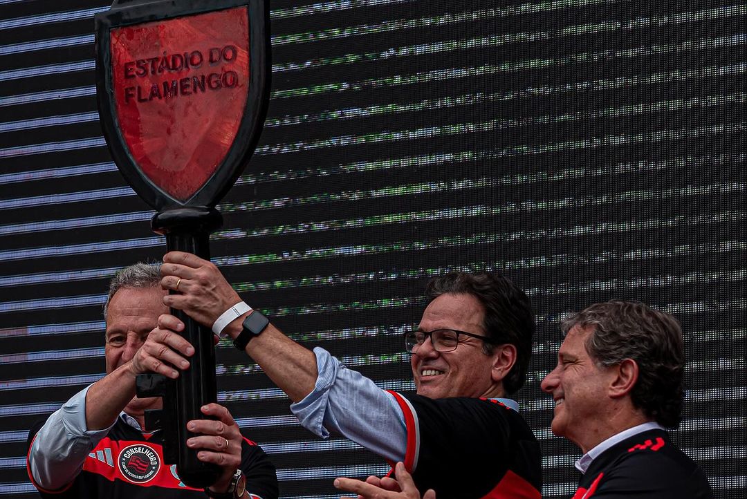 "Tem alguns trâmites burocráticos para cumprir agora. Foi feito com a participação de todos agora na reunião. Agora, os próximos passos são fazer sondagens do terreno e demolir o que tem aqui. Fazer o projeto básico do terreno. Solicitar as licenças necessárias para a execução e, em paralelo, o processo executivo. A fase de licenciamento vai durar até dois anos, espero que um pouco menos do que isso, e depois o período de construção do estádio. Nossa ideia, a exemplo do que a gente tem no CT, é fazer um mastro de 50 metros de altura com um bandeirão do Flamengo"