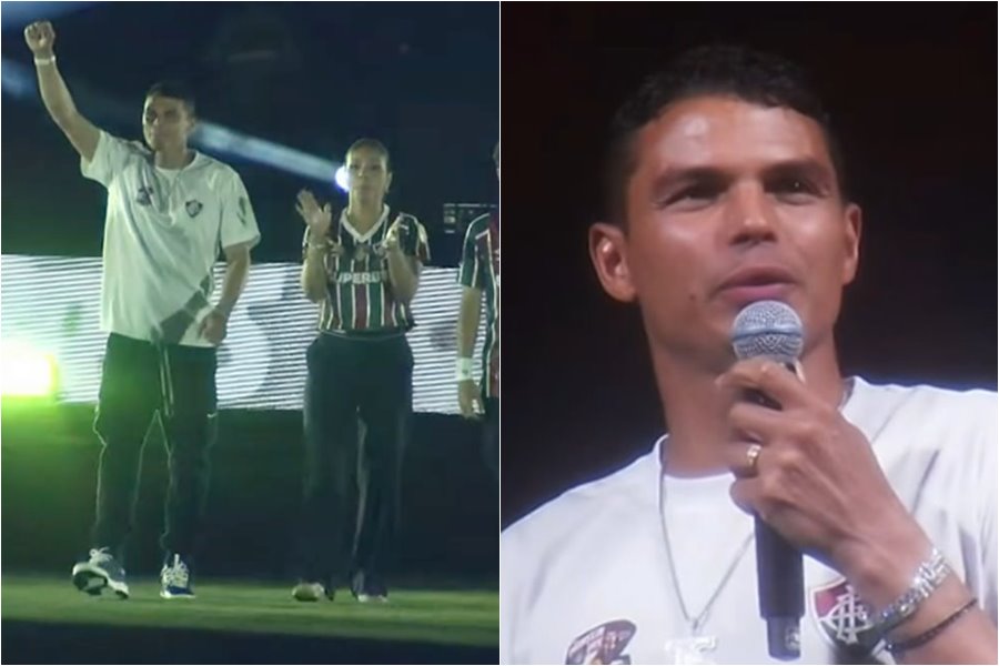A espera chegou ao fim! Em uma grande festa com clima de jogo nas arquibancadas, Thiago Silva foi apresentado pelo Fluminense na noite desta sexta-feira, no Maracanã. O evento atraiu mais de 50 mil pessoas, estabelecendo um novo recorde para a apresentação de um jogador no Brasil, segundo o clube, e contou com um show do grupo Sorriso Maroto.