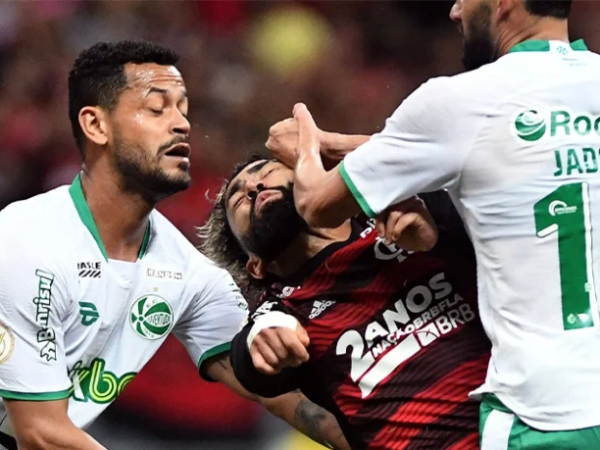A vitória do Flamengo por 4 a 0 sobre o Juventude, na última quarta-feira pela 18ª rodada do Brasileiro, contou com um momento conturbado, e registrado pelo fotógrafo Edu Andrade, do portal LANCE!. A partida contou com um empurrão sofrido por Gabigol e resultou na expulsão de Jadson do Juventude.