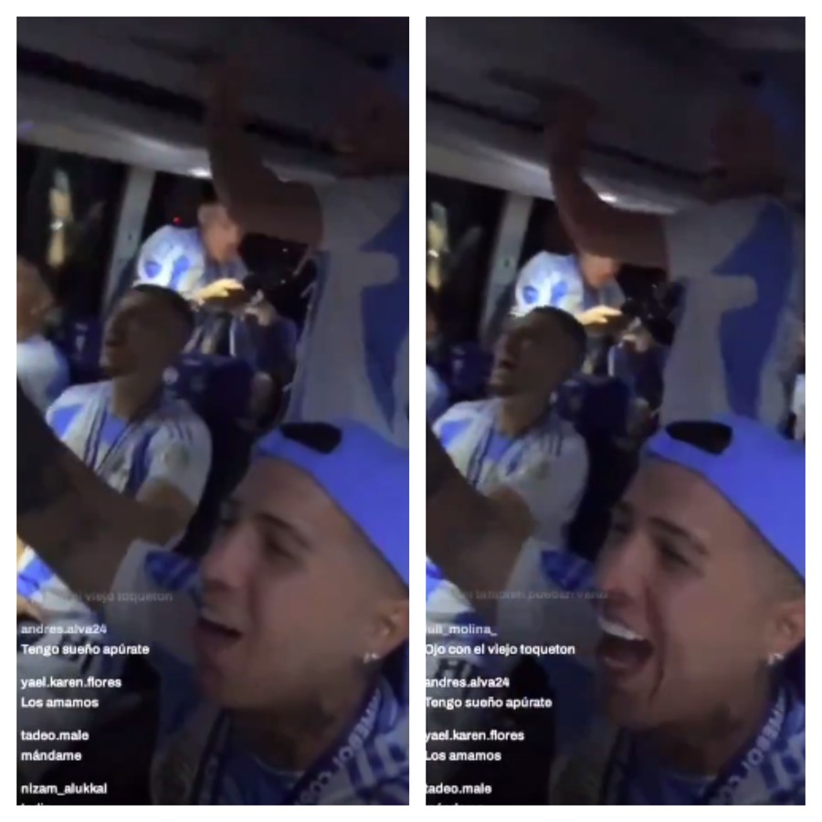 Enzo Fernández foi o jogador que registrou a cantoria da seleção, propagando racismo e transfobia enquanto iam de ônibus do estádio da final, em Miami, ao hotel onde estavam hospedados. Após retormar a consciência e perceber que estava em live no Instagram, Enzo rapidamente fecha a transmissão. Fãs de futebol que gravavam a live capturaram o momento.